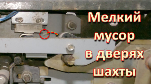 Мелкий мусор в механизме дверей шахты.