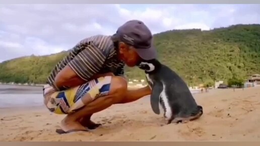 Бразилец Джоао Перейра увидел пингвина на пляже, всего в мазуте и без сил.