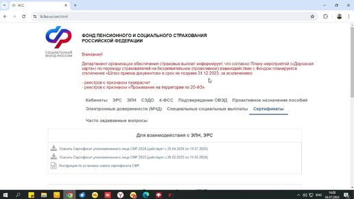 Установка сертификатов ФСС для настройки СЭДО