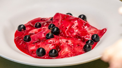 Вареники из чёрной смородины и рикотты в сметанном соусе