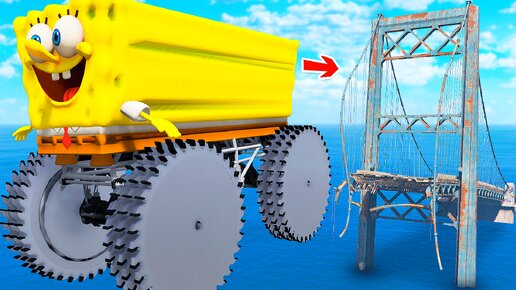 СМОЖЕТ ЛИ ГИГАНТСКОМ СПАНЧ БОБ на ПИЛАХ ПЕРЕЛЕТЕТЬ СЛОМАННЫЙ МОСТ в ГТА 5 МОДЫ - ЭКСПЕРИМЕНТЫ в GTA 5 MODS