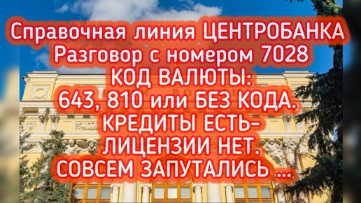 ЦЕНТРОБАНК: Разговор с номером 7028 КОД ВАЛЮТЫ:643, 810 или БЕЗ КОДА. КРЕДИТЫ ЕСТЬ- ЛИЦЕНЗИИ НЕТ…