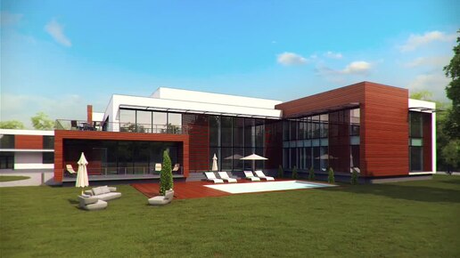 Современный проект загородного дома 🌳 Общая площадь 1180 м² ✨ Кирпичный дом с отделкой деревом и плоской крышей