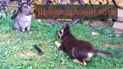 щенок дразнит кота