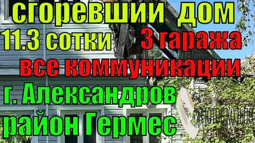 Частично сгоревший жилой дом с коммуникациями и 3 гаража на уч. 11.3 сот. г.Александров (рн Гермес),