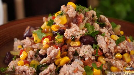 В мексиканском стиле. Рагу из фарша с фасолью и кукурузой