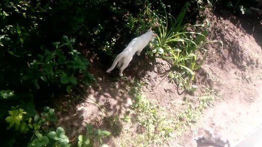 Кошки гуляют в палисаднике и ... какие-то цветы
