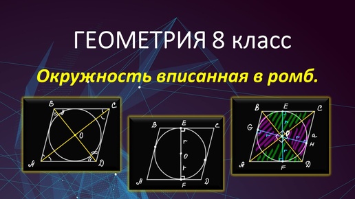 Геометрия 8 класс. Окружность вписанная в ромб. Теория.