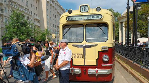 Парад советских ретро трамваев и автомобилей на Чистых прудах в Москве. Видеозарисовки дня Московского транспорта 2024 года.