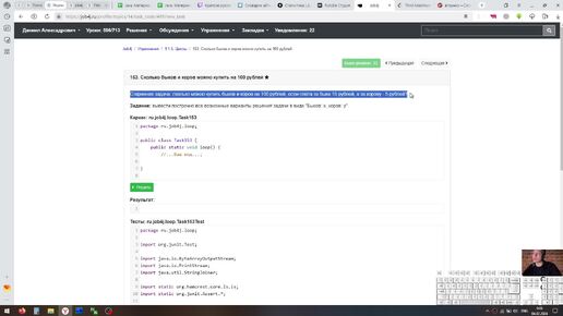 Java. Сколько быков и коров можно купить на 100 рублей