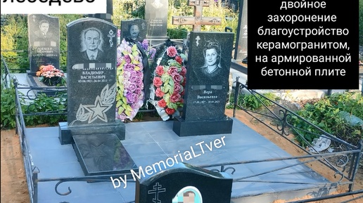 Как установить памятник ? Благоустройство двойного захоронения : бетонная плита , облицованная керамогранитной плиткой. Тверь.
