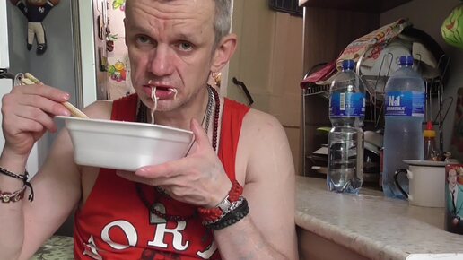 мукбанк напиток шмаковка картошка варегная с укропом помидоры жёлтые и японская лапша якисоба моручан с солью и базиликом