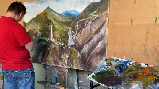 Подмалевок. Цой- Педе, город мертвых, горы Чечни маслом на холсте 100 на 150 см. Зилавди Яшуркаев.
