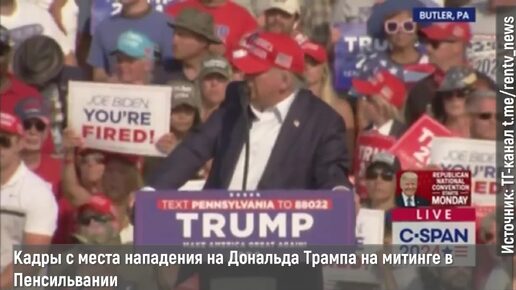 Кадры с места нападения на Дональда Трампа на митинге в Пенсильвании