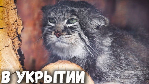 Манул Свэн удобно устроился в укрытии и наблюдает за гостями. Ленинградский зоопарк