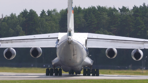 Вылет в ветреную погоду. Разбег Ил-76 с приподнятым элероном-интерцептором