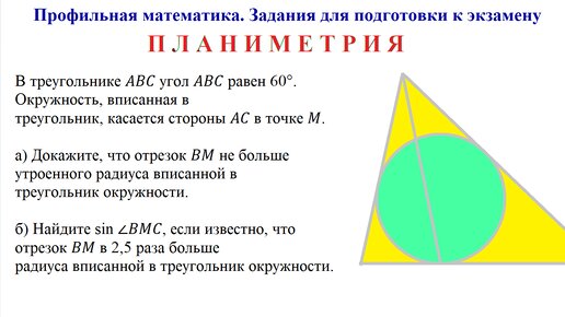 Планиметрия. Профильная математика. Задания для подготовки к экзамену.