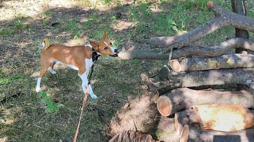 Фокс и Лео утром в парке. Арт-объекты, бурелом... | Передержка собак Ростов