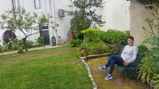 Внутренний дворик (патио) с садом при апартаментах в городке Синтра в Португалии.