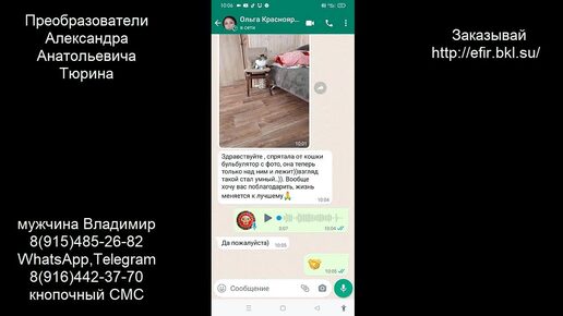 30. отзыв о работе Вихревых преобразователей А.А.Тюрина. Ольга из Красноярска.