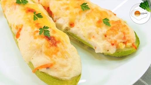 Лодочки из Кабачков Фаршированные Творогом Рисом и Морковью Запеченные в Духовке под Молочным Соусом