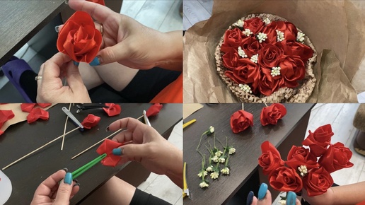 БУКЕТ ЦВЕТОВ ИЗ ЛЕНТ СВОИМИ РУКАМИ