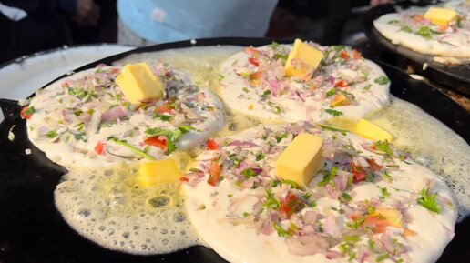 КОРОЛЬ УТТАПАМА ИЗ БАНАРАСА! МАСЛЯНЫЙ И ВКУСНЫЙ! Индийская уличная еда за 60 руб.