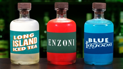 Коктейли в бутылках для вечеринки: Голубая лагуна, Лонг Айленд, Энзони