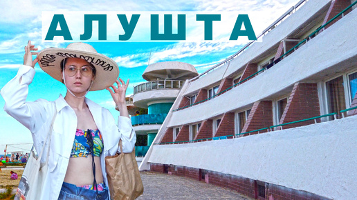 Алушта по набережной в Морской Уголок. Здесь отдыхают. Здания летающие тарелки прошлого столетия. 4K
