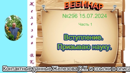 Железов Валерий. Вебинар 296. ч. 1. Вступление. Призываю науку.