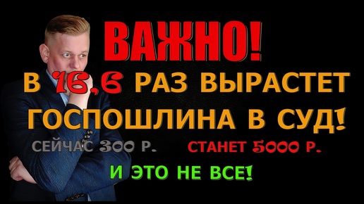 В 16,6 раз вырастет госпошлина за подачу иска в суд. Законопроект пройдет рассмотрение в третьем чтении 23 июля 2024 г.