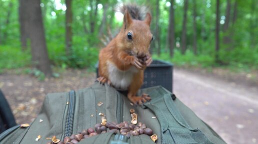 Белке понравился молодой фундук