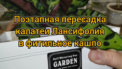 Поэтапная пересадка калатеи Лансифолия в фитильное кашпо.