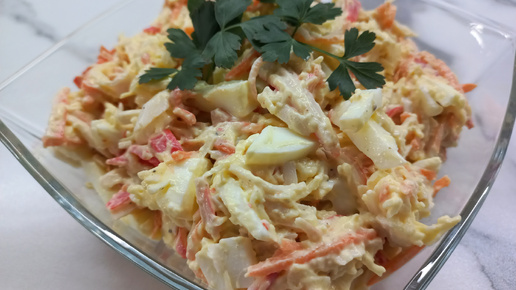 Салат с крабовыми палочками, сыром и корейской морковью