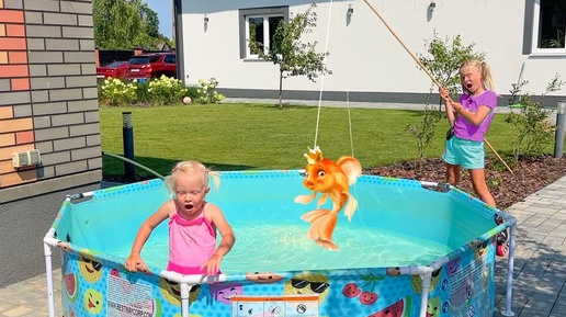Рыбалка и ЗОЛОТАЯ РЫБКА для Софии. Новые роллики и бассейн.