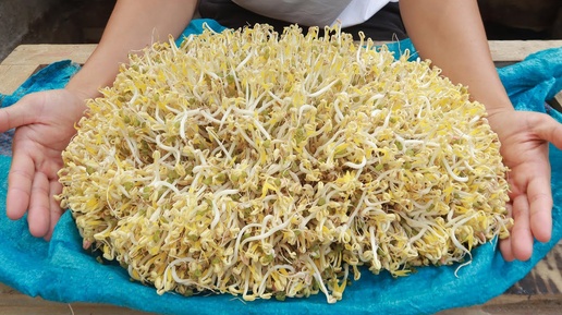 Уникальный метод приготовления ростков фасоли из мешков: равномерно белые и пухлые.