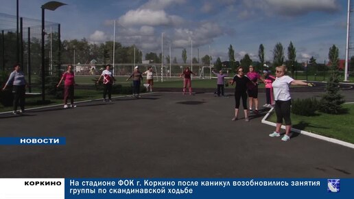 На стадионе ФОК г.Коркино, после летних каникул возобновились занятия у группы по скандинавской ходьбе.