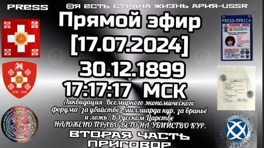 Прямой ЭФИР🎥 АРиЯ-USSR [17.07.2024] 17:17:17 МСК Ликвидация ВЭФ Вторая часть ПРИГОВОР