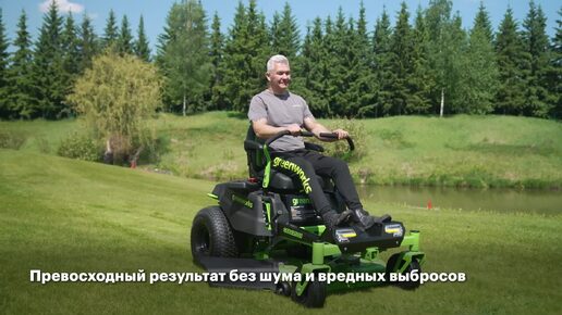 Аккумуляторный садовый райдер Greenworks с нулевым радиусом разворота