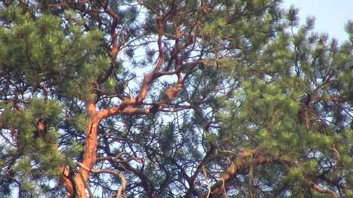 Сойка кричит на верхушке Сосны.