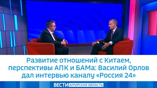 Развитие отношений с Китаем, перспективы АПК и БАМа: Василий Орлов дал интервью каналу "Россия 24"