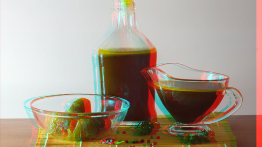 3D stereo red cyan Острый соус демиглас из куриный костей