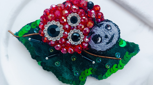Божья коровка на листике, самая милая брошь которую вы только можете найти)