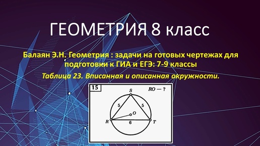 Геометрия 8 класс. Описанная окружность в задаче № 15 на готовых чертежах.