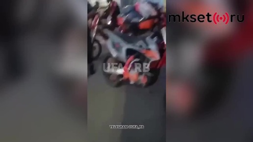 Молодые мотоциклисты нарвались на злого дядьку в уфимском селе Нагаево и он принялся учить молодежь манерам. >