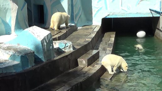 Далее: Представляем увлечённо играющих с канистрой в воде белых медведей