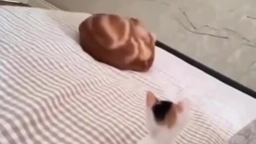 Котик свернулся в клубочек, увидев милого котика - малютку.