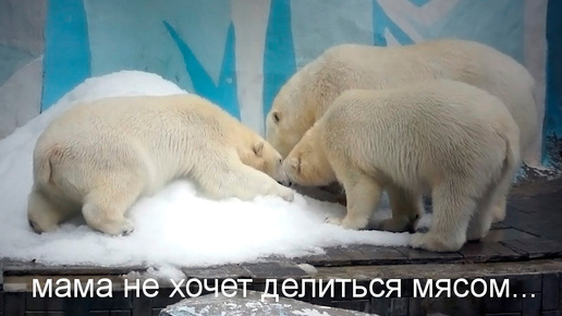 Мама Герда ведет себя неожиданно для медвежат! Мясом ни с кем делиться не хочет!