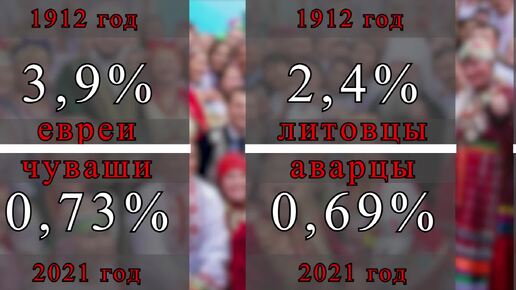 Какие 10 самых больших национальностей жили в России в 1912 году и какие сегодня (в сравнении)
