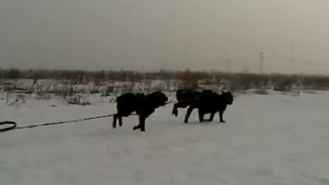 Буксировка нарт. Упряжка ризеншнауцеров.